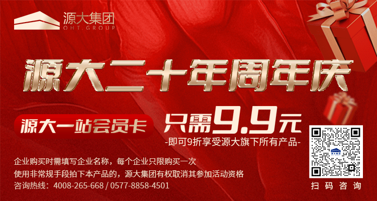 风华二十载,初心不变;源大周年庆,感恩回馈。源大成立正值20周年,特开发源大旗下系列产品会员卡,感恩回馈客户多年支持。9.9元购买源大一站会员卡,即可9折享受源大旗下所有产品 。