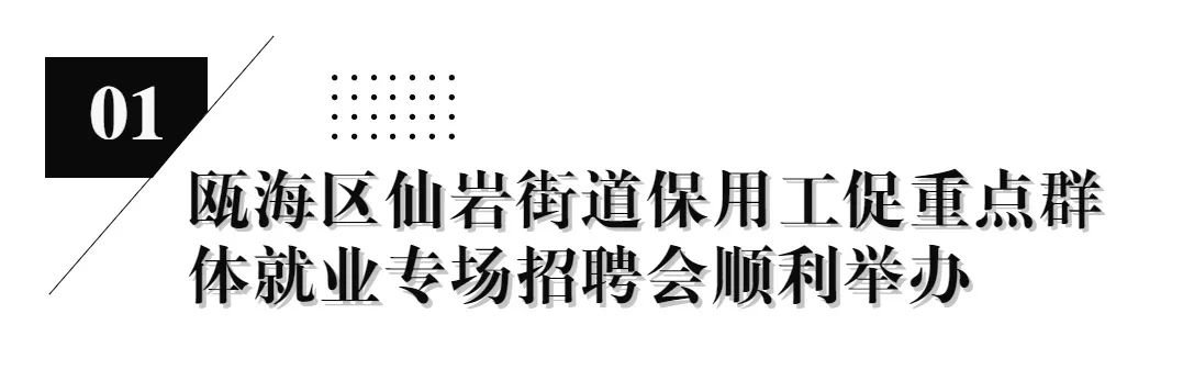 2023年6月1日,瓯海区仙岩街道保用工促重点群体就业专场招聘会在仙岩街道朝阳大街与沈东路交叉路口举行。