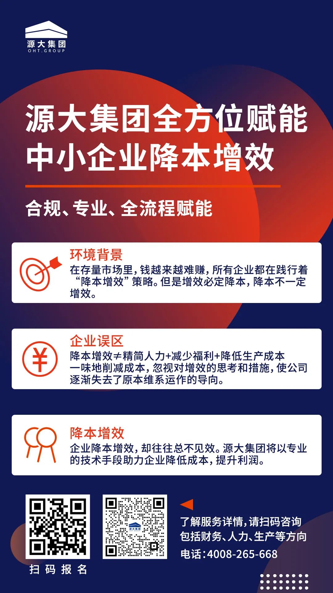 源大集团专注企业服务20年,结合不同业务、不同行业,通过制度差异化方案,帮助企业实现降本增效,期待与您合作。拨打4008-265-668立即咨询!