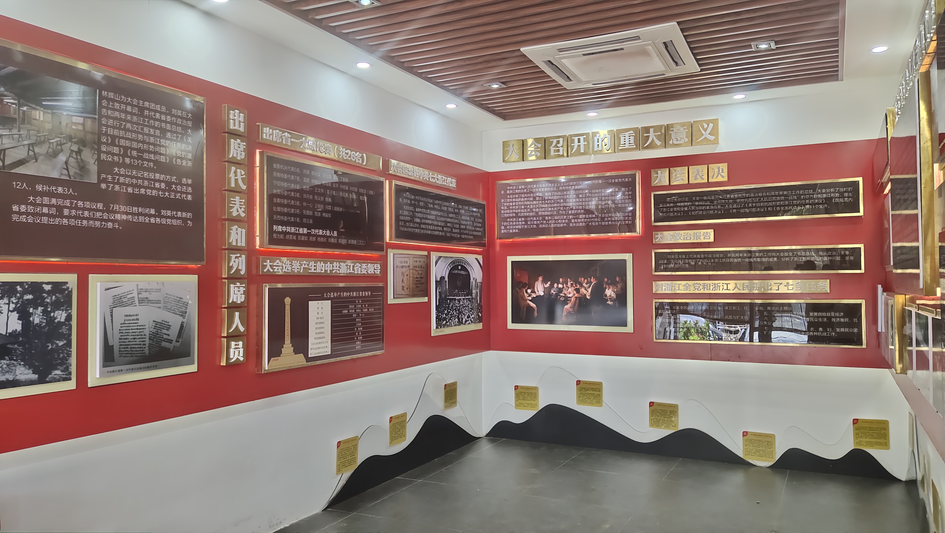 上午,大家从温州市区启程前往平阳县凤卧镇的中共浙江省委一大旧址(马头岗)会合,在红色展览厅内参观学习。而后离开展览厅,走过石头路,看到了掩映在层叠的林木后的马头岗会址,平房并排一共10间。