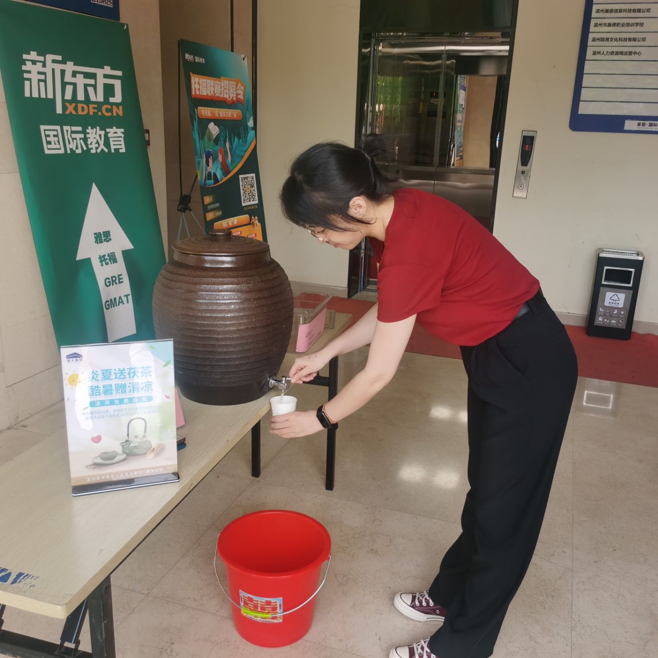 赓续源大关怀传统,谱写盛夏新篇章。7月13日起,温州善源慈善公益服务中心、源大义工开展为期一个多月的“炎夏送茯茶,酷暑赠清凉”公益活动,在瓯海、龙湾等办公场地设立茯茶饮点,免费供工作人员及周边路人饮用。