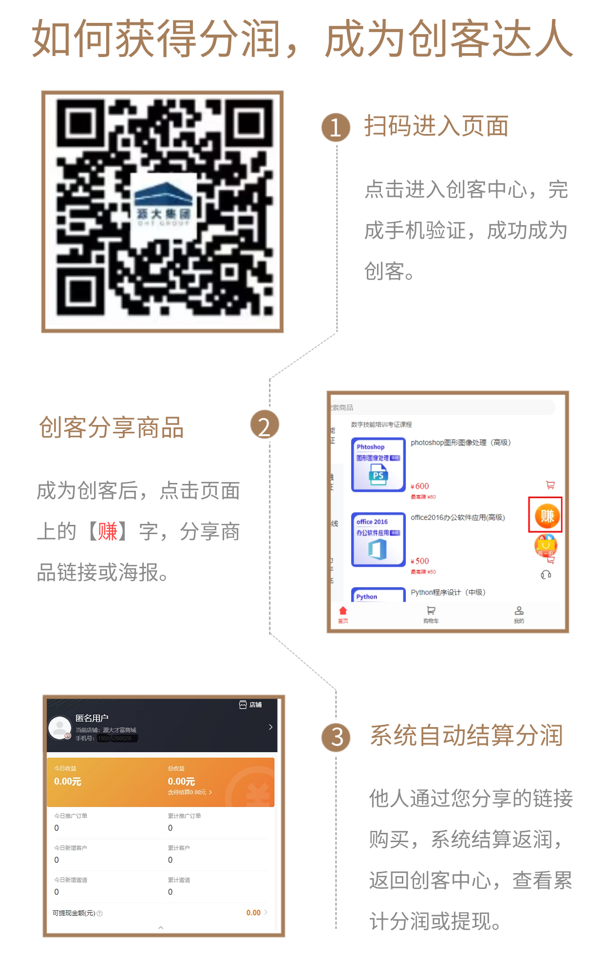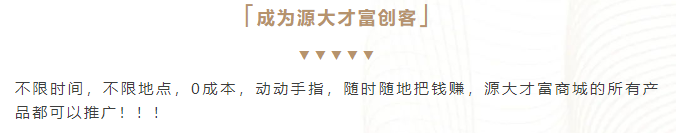 您还可以邀请好友成为源大创客,您邀请的好友卖出源大商城的产品可以获得分润,同时您也可以获得相应的分润奖励。