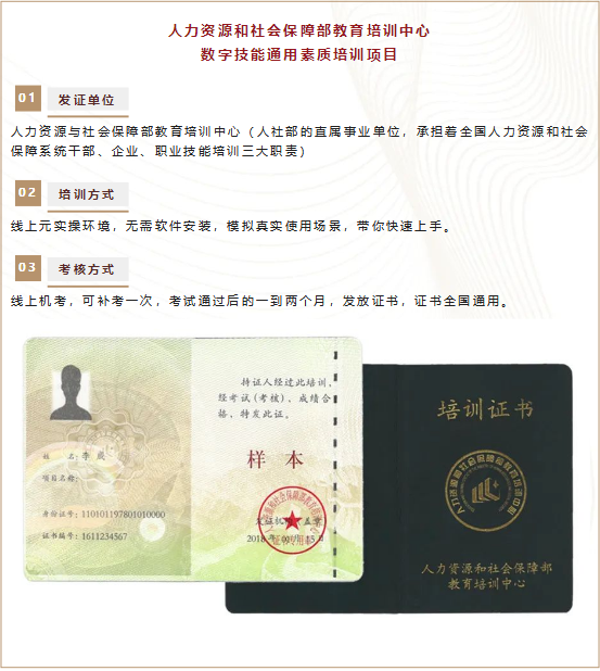 划重点!主推数字技能线上培训考证产品,时间不限,地域不限,数字技能项目介绍: