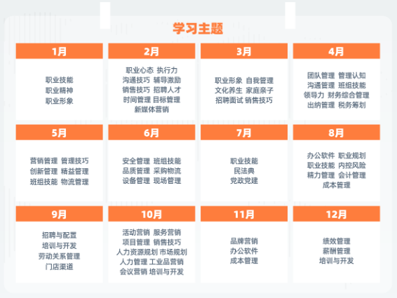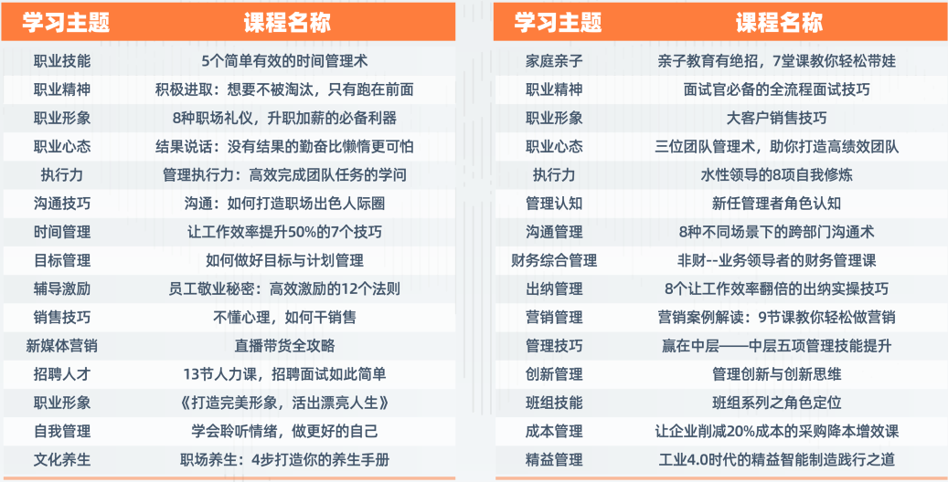 开通365学习年卡账号,畅学62个学习主题,畅听300门线上课程,多维度全方位提升,让培训更简单却更有价值。