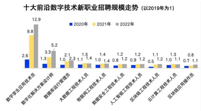 数字技术类新职业发展迅猛。根据《数字技术新职业趋势洞察报告》,从招聘规模走势上看,如人工智能工程技术人员、数字孪生应用技术员、数字化解决方案设计师等新职业近3年的招聘规模持续上涨。而在薪酬方面,这些新职业也具有显著优势,其中人工智能工程技术人员平均薪酬达到24959元/月。