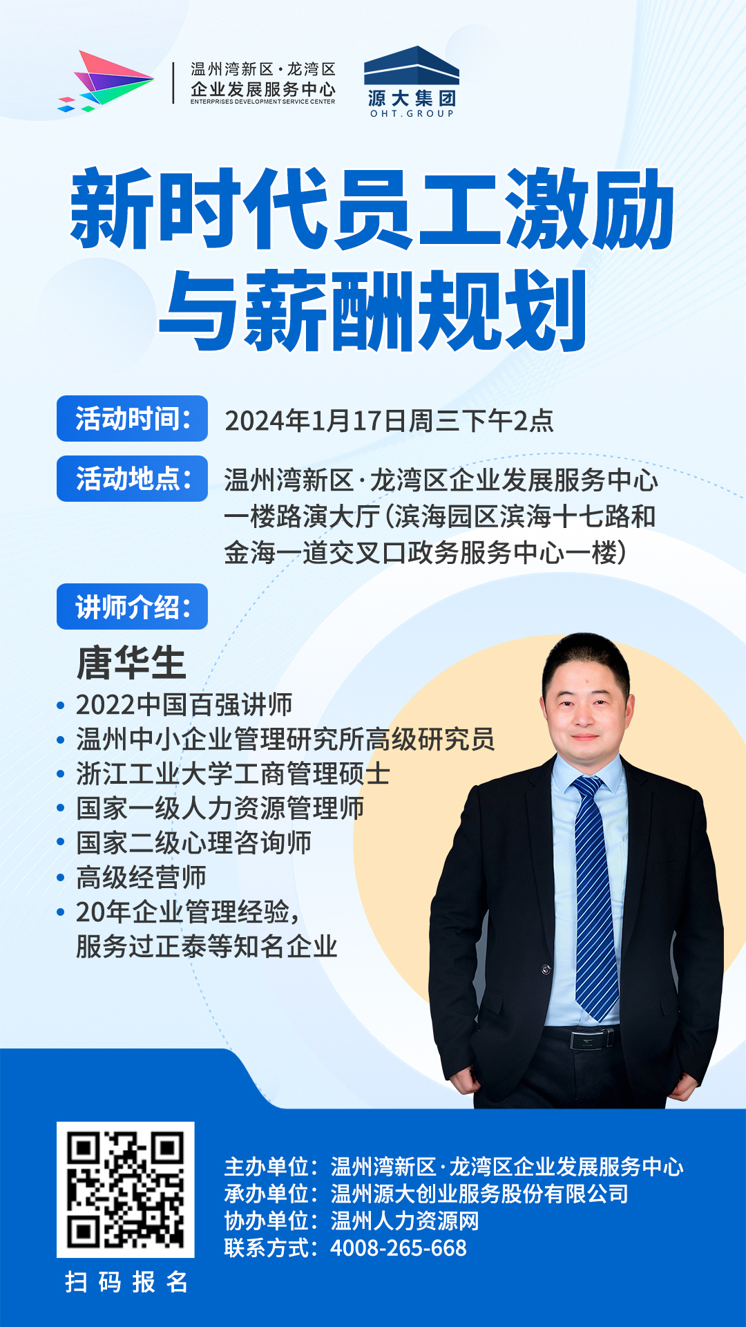 【活动预告】1月17日“新时代员工激励与薪酬规划”公开课 欢迎报名