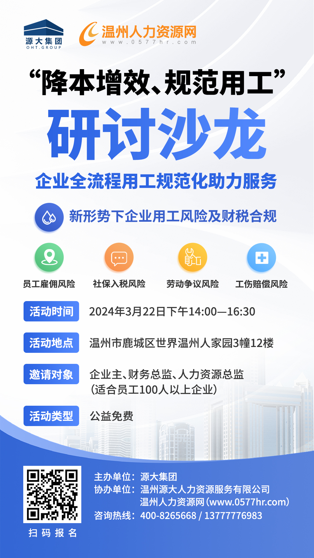 【活动预告】3月22日“降本增效、规范用工”研讨沙龙——免费参加 欢迎报名
